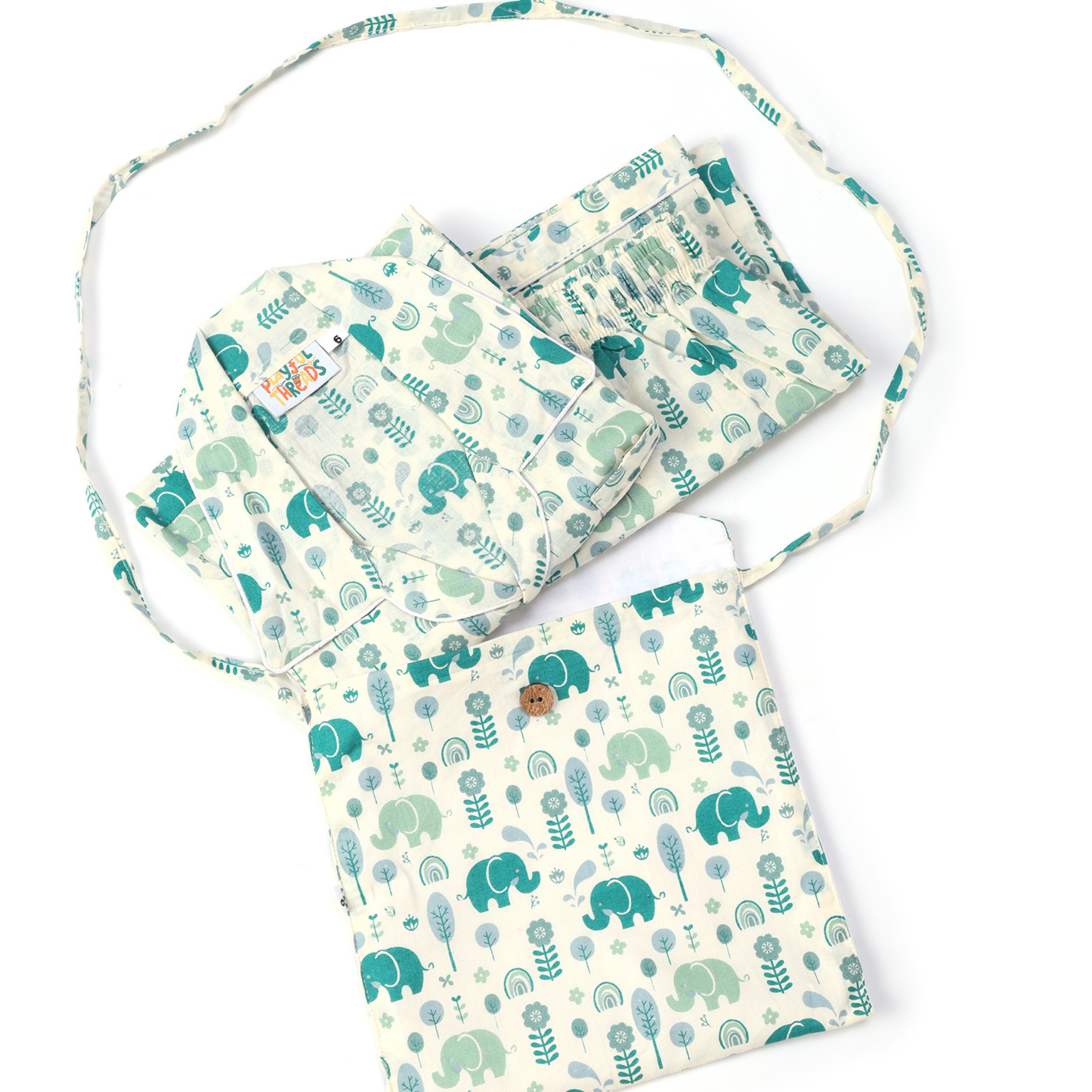 Soothing pattern of Gentle blue and green elephants, along with whimsical trees makes it a perfect choice of sleepwear for your little one!!