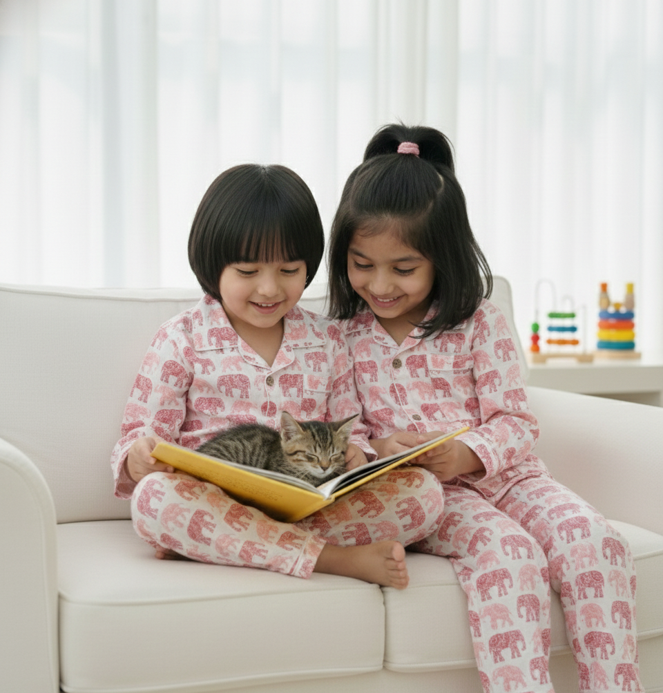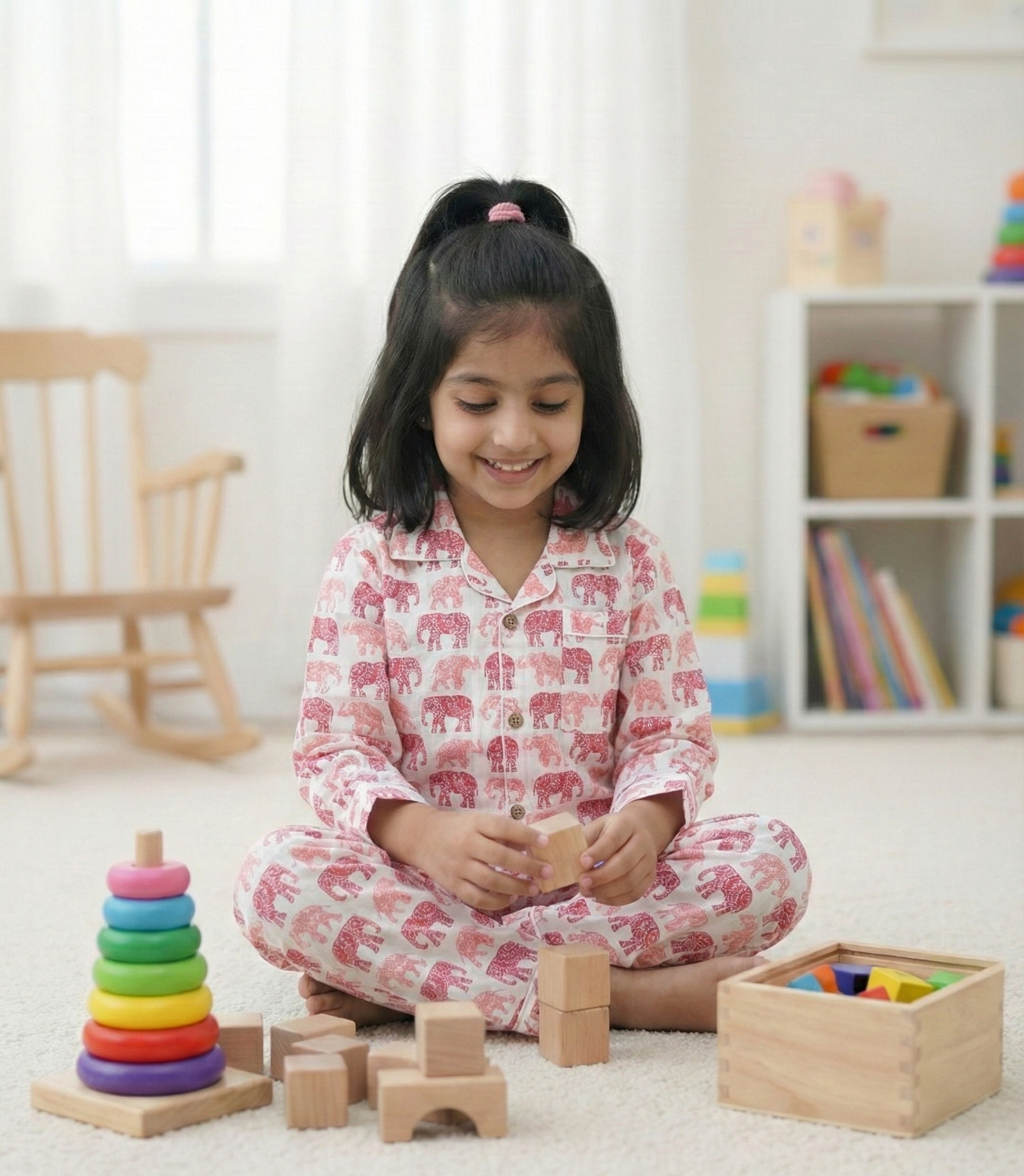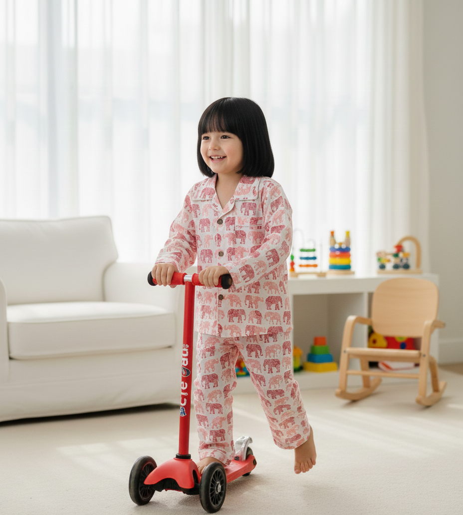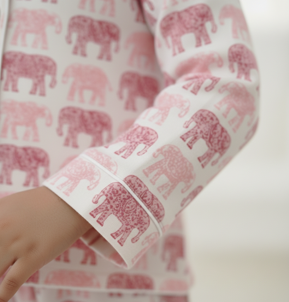 March into magical dreams with our Tusker Tales Night Suit. Inspired by traditional motifs and crafted for modern comfort, this delightful set features an intricate Elephant print that adds a touch of whimsy to your little one's bedtime routine.